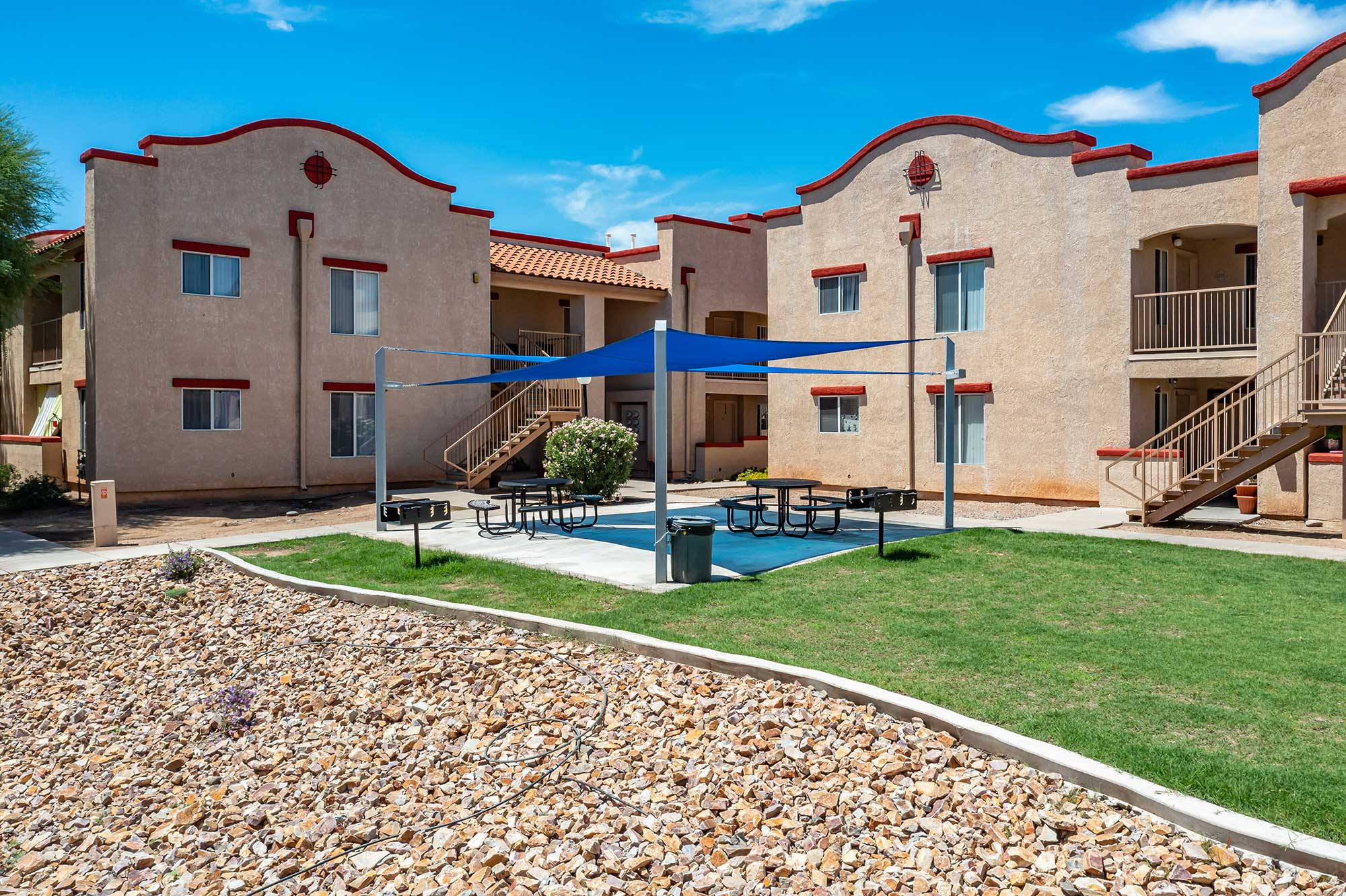 Sahuarita Mission: Beautiful inside and out. Come home to a serene setting nestled the comforts of nature's tranquil outdoors, surrounded by lush landscaping and mature trees. Designed for every lifestyle from the pet lovers who will enjoy walks around the community's winding paths surrounded by beautiful greenery to those wanting to enjoy the spectacular views of the Santa Rita Mountains from their private patios and BBQ areas. Sahuarita also offers a play area/playground, laundry facility and resident service center for easy access without having to leave home.